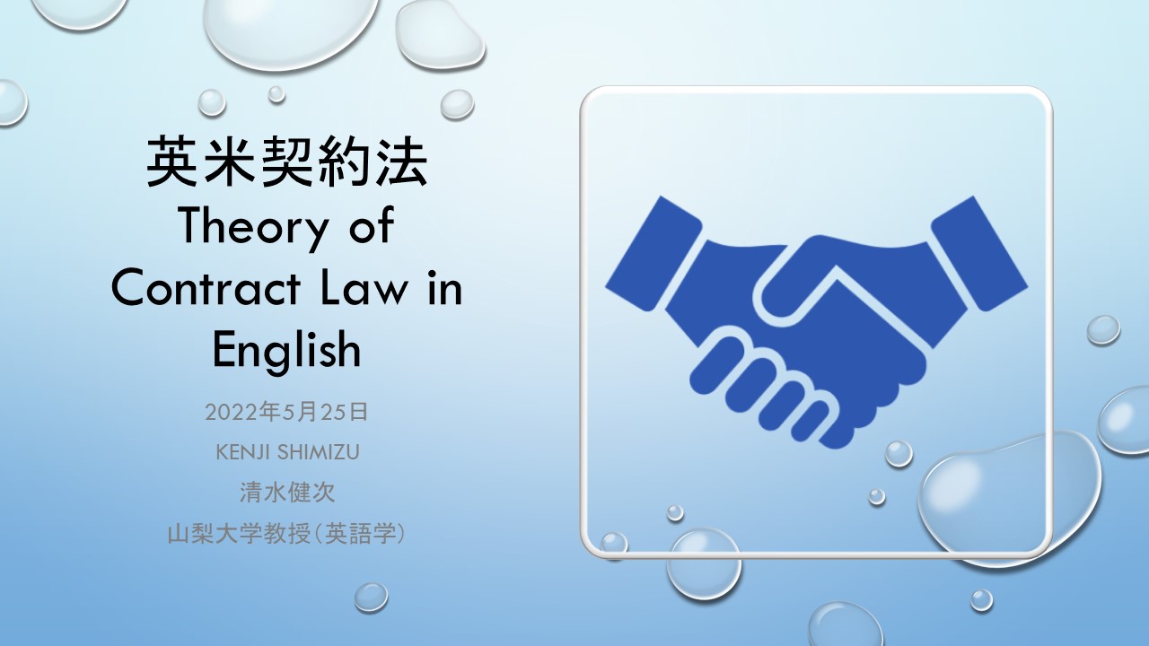 英米契約法 English Contract Law 投稿日: 2022年5月20日 投稿者: Kenji Shimizu 清水健次 返信 https://trabajodekenchan.wordpress.com/english-contract-law/ 共有: X で共有 (新しいウィンドウで開きます) X Facebook で共有 (新しいウィンドウで開きます) Facebook いいね 読み込み中…